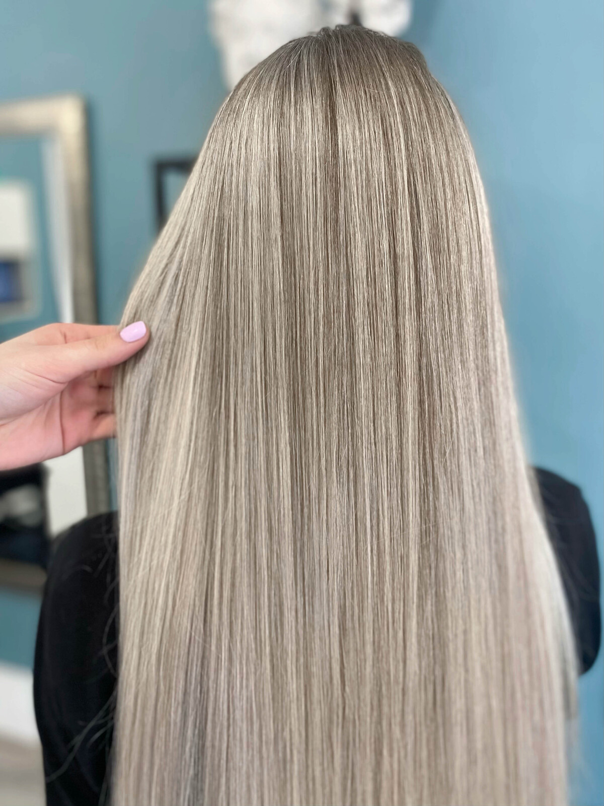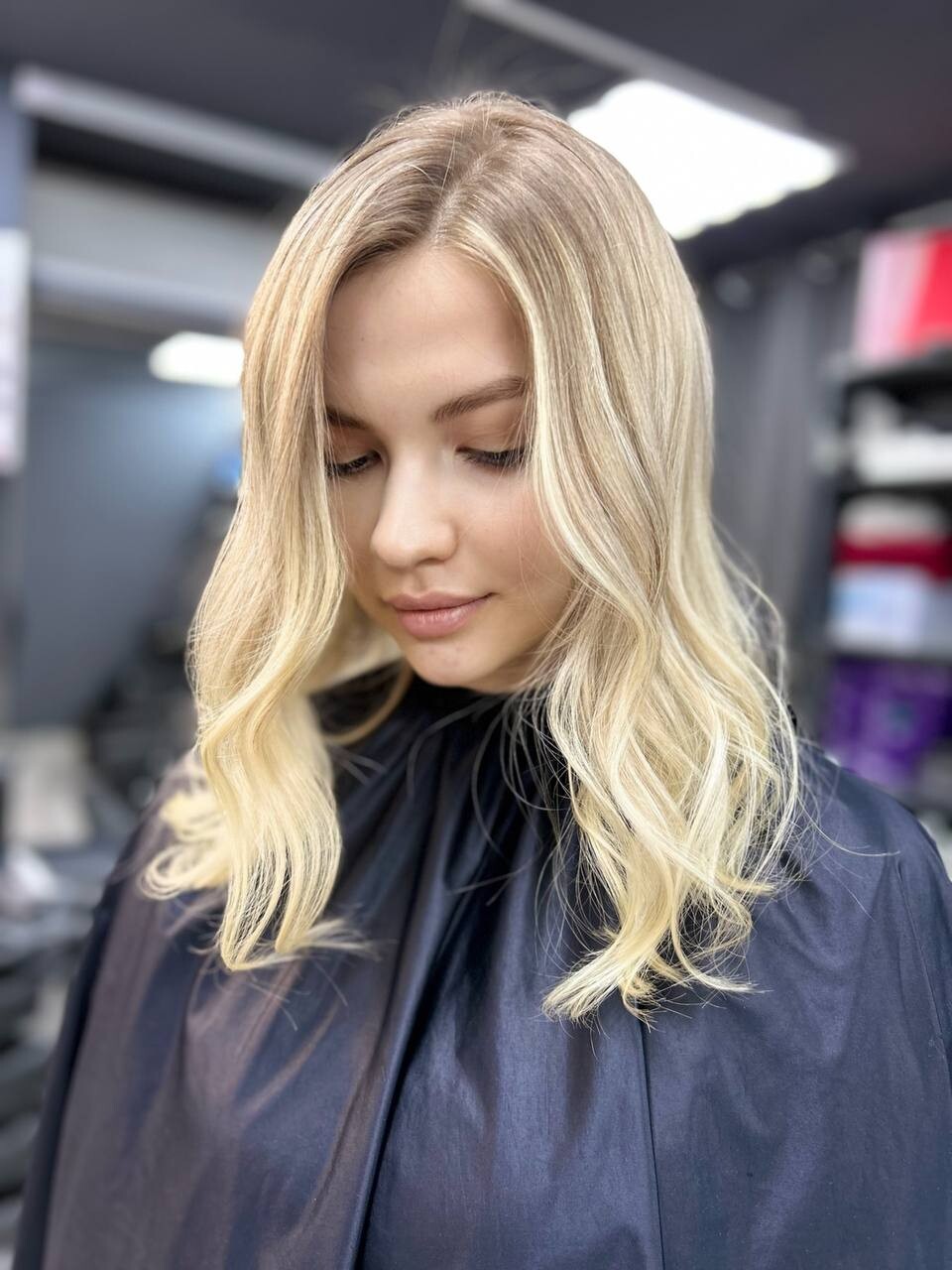 - Плавная растяжка корней в тотал блонде